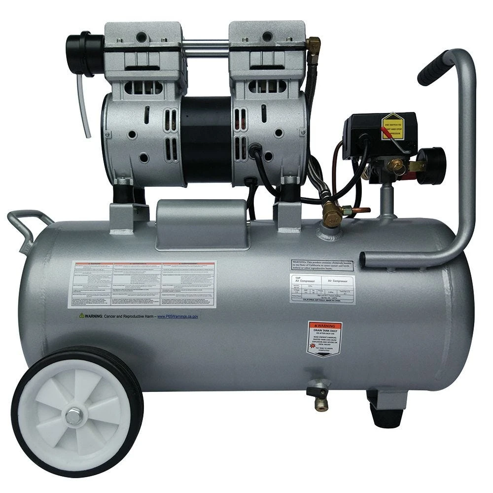 The California Air Tools 8010A Ultra-Quiet, Oil-Free, Lightweight Air Compressor is one of the quietest air compressors in the industry, with a noise level of just 60 dB. The powerful 1.0 HP motor operates at only 1680 RPM, resulting in less noise and less wear. The oil-free dual piston pump system is engineered for high performance and durability. This pump is designed to have a life cycle of 3000+ hours compared to other comparable air compressors with life cycles of 500 hours or less. The oil-free pump allows for use in a variety of temperatures and uneven terrains. The large 8.0 gal. rust-free aluminum air tank is lightweight, and the wheel kit makes it very easy to transport. This air compressor is ideal for anyone working inside where noise is a major issue.