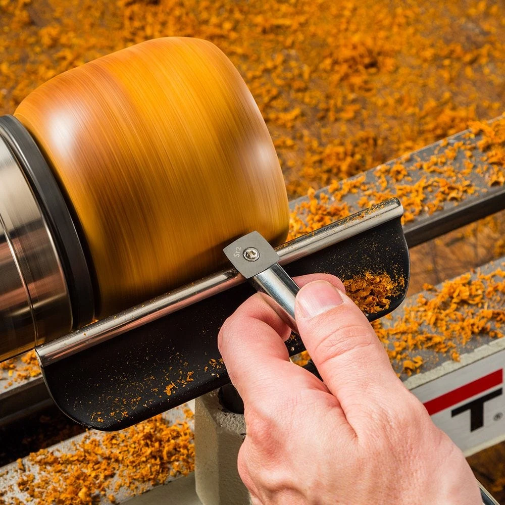 Take a close look at the edge of this carbide cutter and you’ll realize it’s not actually square. Instead, each of its four edges is slightly crowned with a 2” radius. This subtle change makes the cutter excellent for smoothing cuts. The replaceable, rotatable cutter eliminates the hassle and downtime of sharpening. Simply rotate the carbide cutter for a fresh, sharp edge, and replace it once all edges have grown dull. Solid carbide stays sharp for longer when compared with steel, giving you a much longer useful life. The shaft features a flattened back for stability when using the tool rest, and the handles are made of solid ash encased with a thick, molded rubber end for an enhanced grip and reduced fatigue. They’re great for beginning to advanced woodturners, ensuring quick success without the frustration of dull tools. Since you don’t need to invest hundreds of dollars into sharpening equipment, they’re also an excellent value.