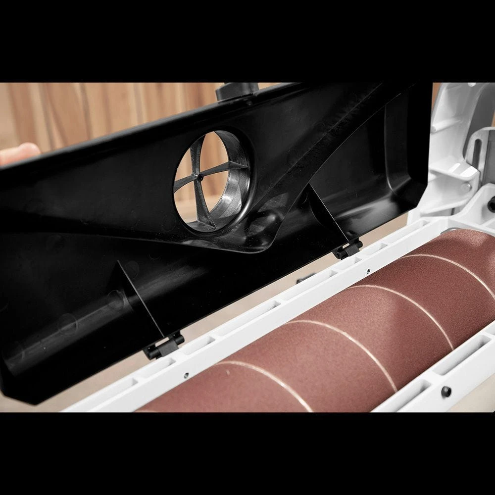 - Tool-free abrasive take-up clips make abrasive changes quick and easy