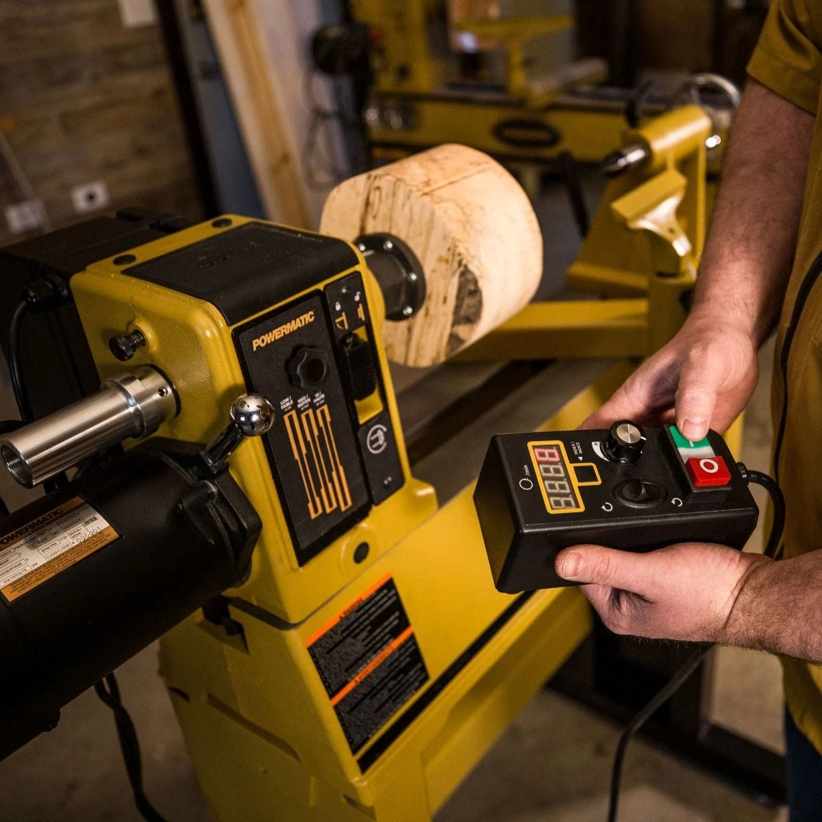 The Powermatic PM2014 Lathe features a phase inverter that powers its 3-phase motor on a common 115V receptacle. That means you get commercial-grade power in a consumer shop, or wherever else you can find an outlet. The motor’s abundant torque is consistent, even at speeds as low as 15 RPM. From spindles and table legs to bowls and other hollow forms, the PM2014 is a steadfast, capable performer. The 1HP motor can turn large work within three variable speed ranges: 15-900 RPM, 30-1,800 RPM and 60-3,600 RPM. The control box clearly displays your spindle speed (and indexing positions), and is magnetically mounted so you can easily move it to suit your turning operation. The 24 indexing positions let you locate repeated features, such as flutes and inlays, around the perimeter of the turning. This model is the benchtop version. The lathe is also available with a height-adjustable stand (#65017, sold separately).