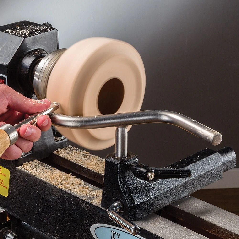 Our Bowl Turner’s Tool Rest features two curves—one gradual, one more angular—to mirror the profile of your bowls and turned vessels. The curves can follow the convex exterior or the concave interior for shaping and hollowing. The more angular end can tuck neatly into the opening of a narrow vessel, and round the corner for hollowing. The tool rest is made of solid stainless steel for heft and resistance to corrosion. It has a silky smooth finish that helps you glide the chisel along the rest, and provides comfort for your fingers. 5/8” diameter post fits most mini and midi lathes.