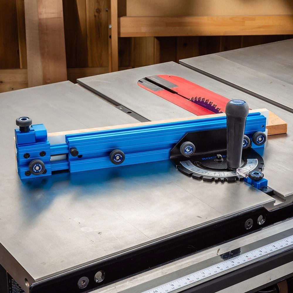 - Mounts to Rockler Precision Miter Gauge (#53310, sold separately) with T-bolts and knobs (included with Precision Miter Gauge)