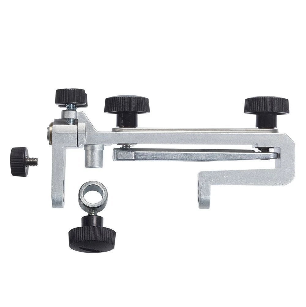 Tormek’s SE-77 Square Edge Jig features dual fine adjustment knobs on the side that let you easily adjust it for squareness to the wheel—an essential adjustment when sharpening chisels and plane blades. Fine adjustment is accomplished in seconds by loosening one of the knobs and tightening the other. The jig’s design also lets you sharpen chisels that taper along the length of the blade, such as Japanese chisels. You can even set the jig for a slightly convex shape, such as for plane blades with a scooped profile. Safety stop keeps the jig securely on the Universal Support and prevent the tool from falling off the support or grindstone. Fits chisels and plane irons up to 3” wide.